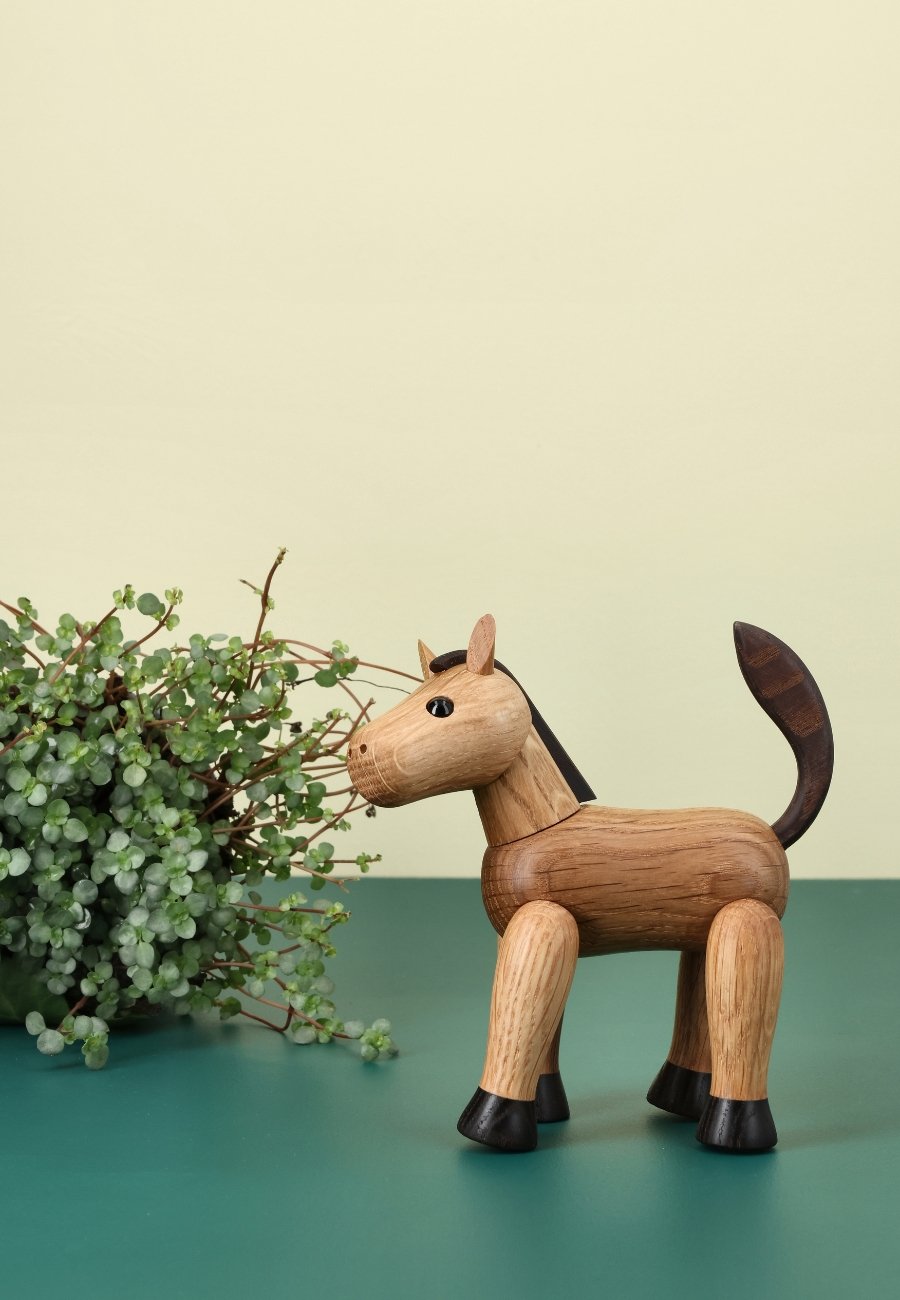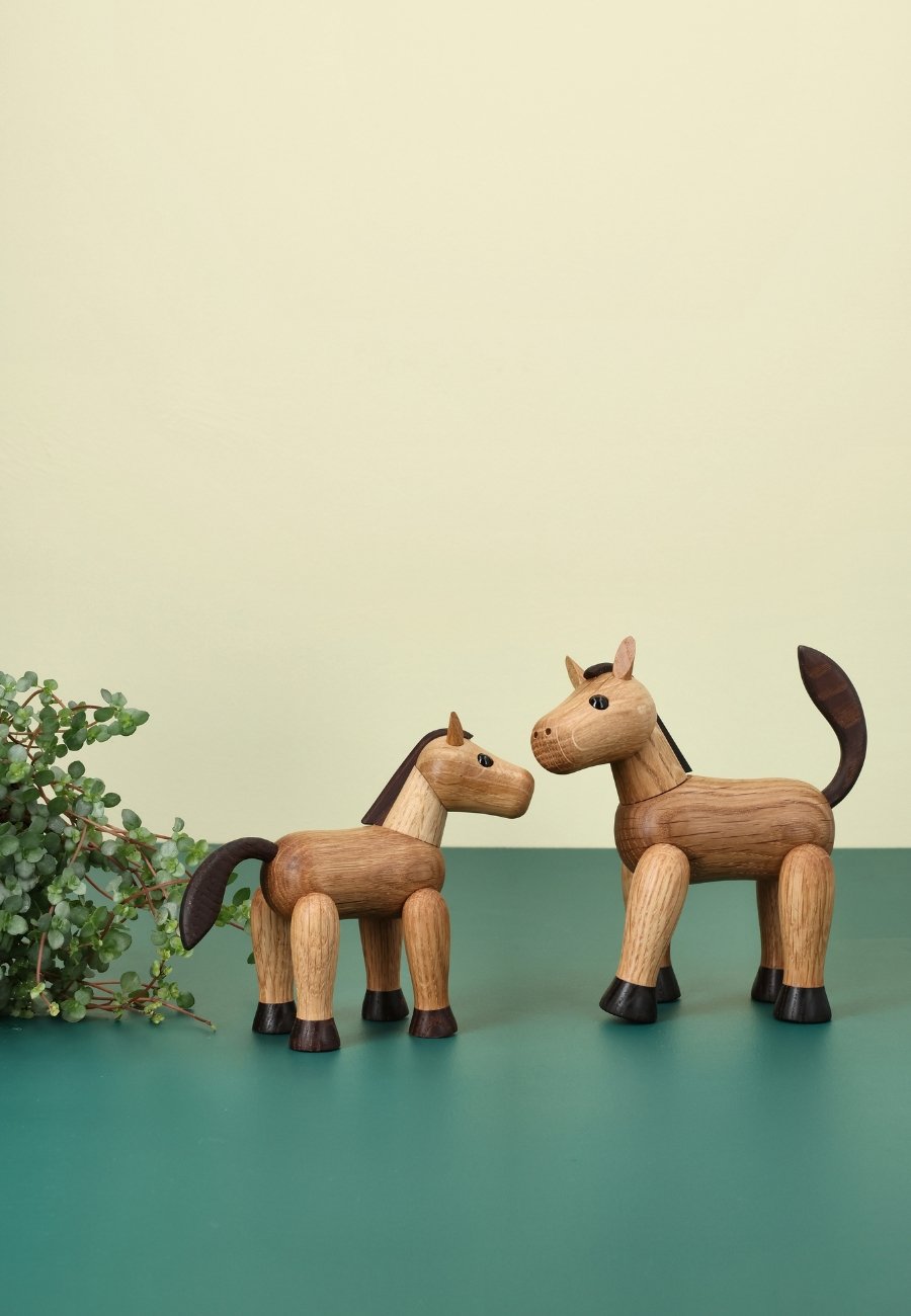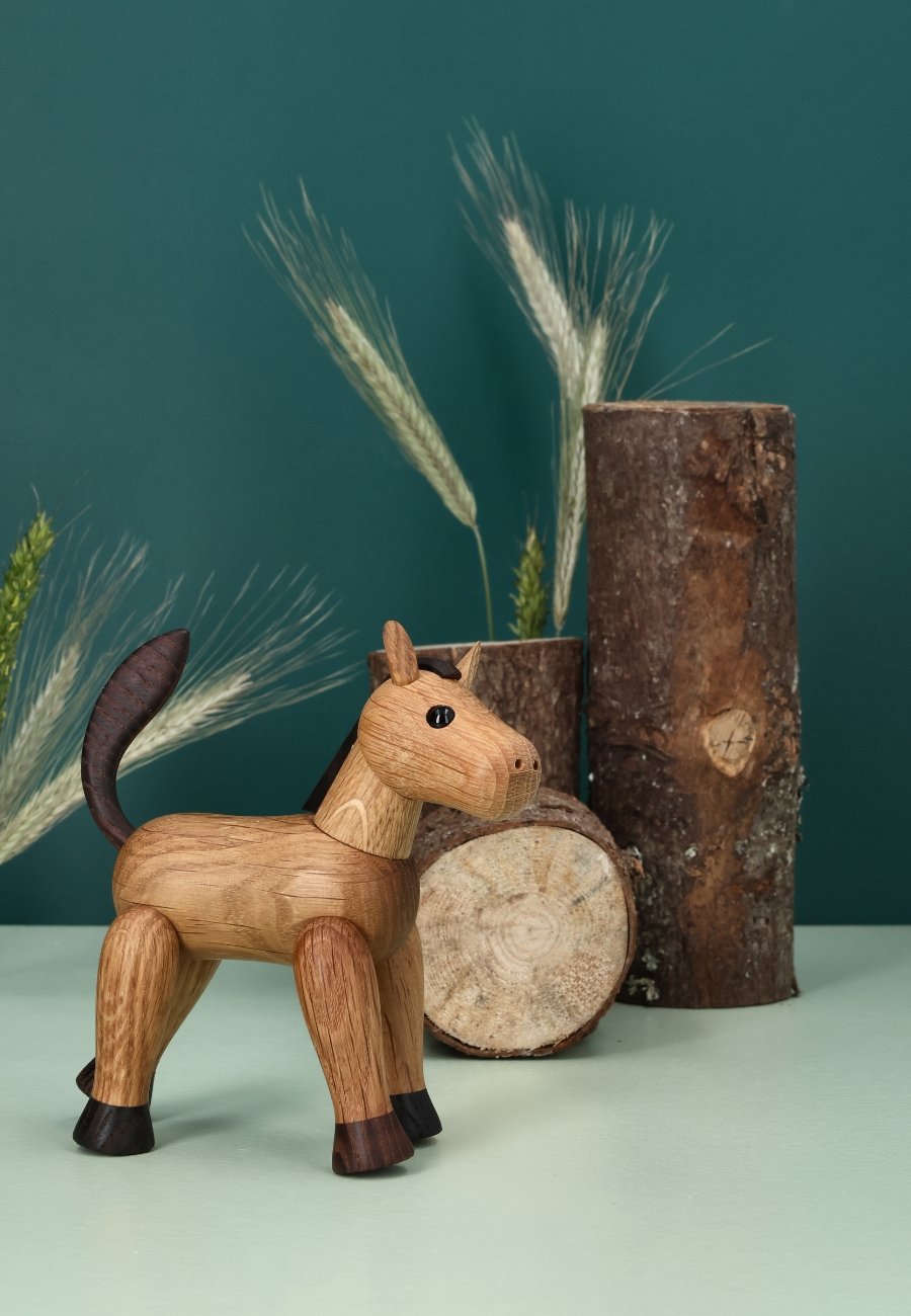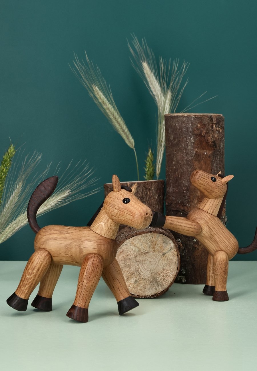 Beauty är en graciös trähäst skapad av Chresten Sommer. Hennes strålande charm och noggranna detaljer ger värme och karaktär till alla hem. Med sitt stolta huvud och svängiga svans är denna lilla häst en symbol för ren skönhet. Perfekt för bokhyllan, fönsterbrädan eller skrivbordet, där hon kan trava runt i lugn och ro.