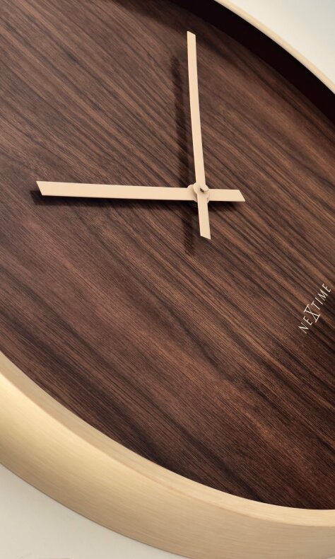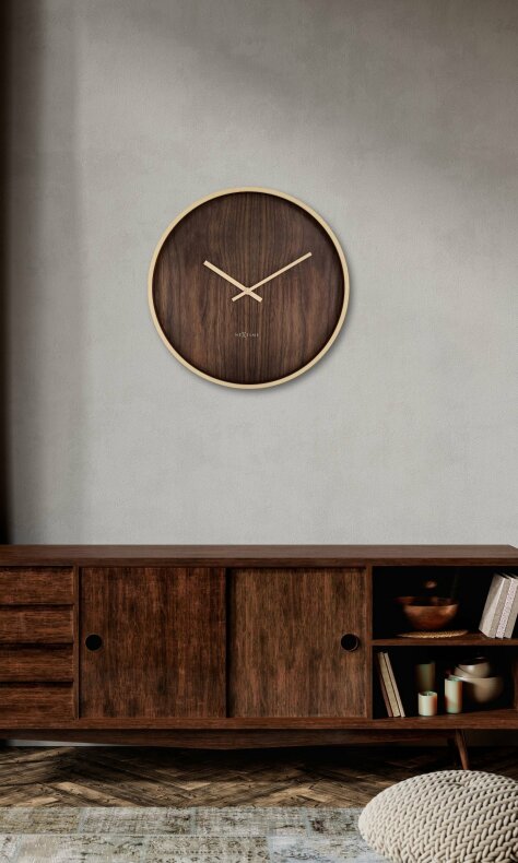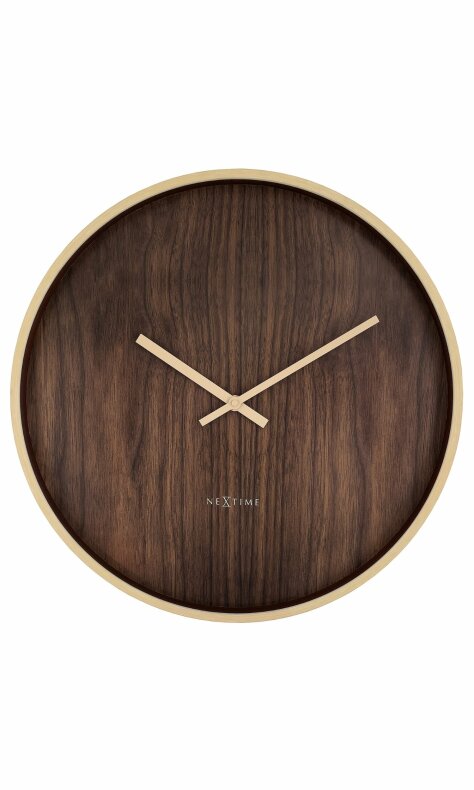 Tystgående väggklocka. Mått: Ø50 cm / D5 cm. Material: Hips, aluminium. Färg: Brun. Batteri: 1 x AA (ingår inte)