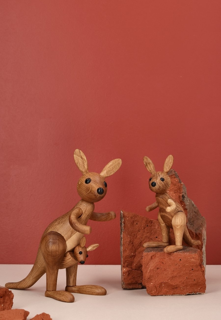 Trädekoration Känguru. Färg: Natur. Mått: H16,5 cm / L17 cm / B7,3 cm. Material: FSC Ek, FSC lönn. Designer: Chresten Sommer