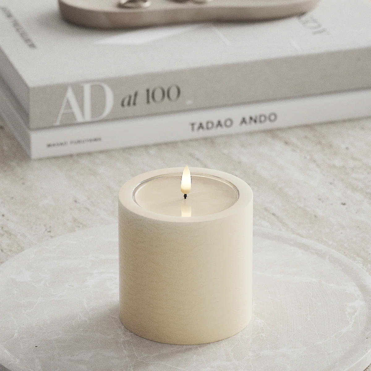 Skapa en varm och inbjudande atmosfär med detta vackra LED-blockljus från UNIQUE Candles. Med en handgjord, exklusiv och strukturerad yta erbjuder ljuset en verklighetstrogen WETLOOK™-design, vilket ger ditt hem en sofistikerad touch. Den patenterade 3D REAL FLAME™-teknologin skapar en imponerande ljuslåga som ger ett mjukt och behagligt sken. Detta ljus är både praktiskt och hållbart med en brinntid på upp till 1500 timmar. Du kan styra ljuset enkelt med en fjärrkontroll (säljs separat) och använda timerfunktionen för att ställa in ljuset precis som du vill.