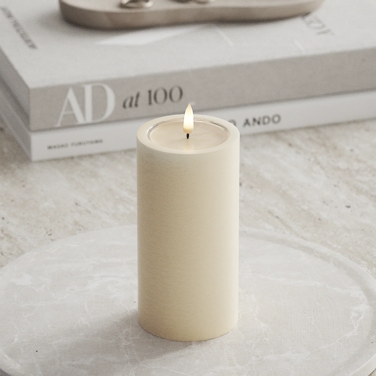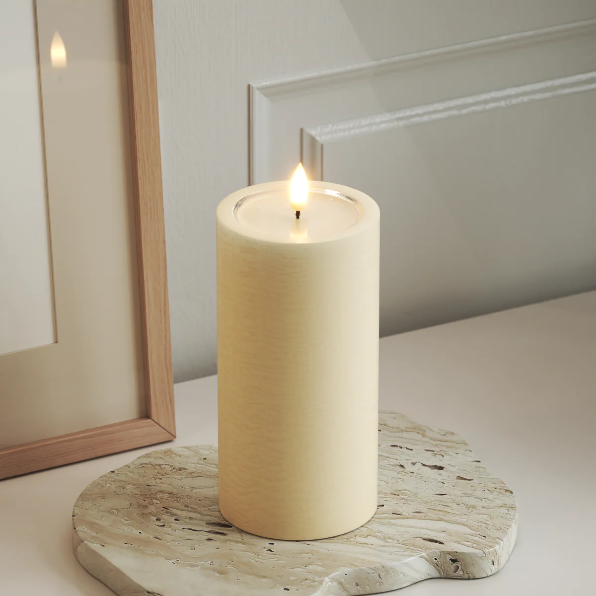 Lägg till en touch av elegans i ditt hem med detta LED-blockljus från UNIQUE Candles. Med sin handgjorda och exklusiva strukturerade yta erbjuder ljuset en verklighetstrogen WETLOOK™-design, som skapar en varm och inbjudande atmosfär. Den patenterade 3D REAL FLAME™-teknologin ger en imponerande ljuslåga som lyser upp rummet på ett vackert sätt. Detta ljus är praktiskt och långvarigt med en brinntid på upp till 1500 timmar. Du kan enkelt styra ljuset med en fjärrkontroll (säljs separat) och använda timerfunktionen för att få den perfekta stämningen när du önskar.