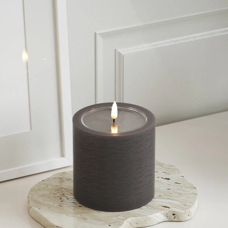 Skapa en mysig och elegant atmosfär med detta stiliga LED-blockljus från UNIQUE Candles. Ljuset är handgjort med en exklusiv strukturerad yta och har en förstärkt topp i harts, vilket ger en fantastisk WETLOOK™-effekt. Med den patenterade 3D REAL FLAME™-teknologin får du en verklighetstrogen lågeffekt som förvandlar varje rum. Detta ljus är designat för både säkerhet och långvarig användning. Det är perfekt för att skapa stämning vid alla tillfällen, och timerfunktionen kan enkelt aktiveras med en separat fjärrkontroll, vilket ger dig möjlighet att ställa in ljuset enligt dina önskemål.