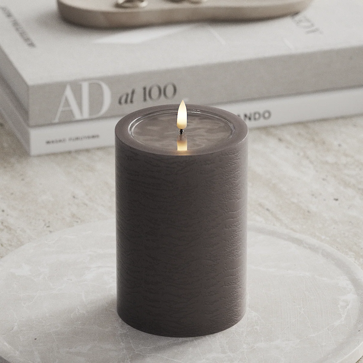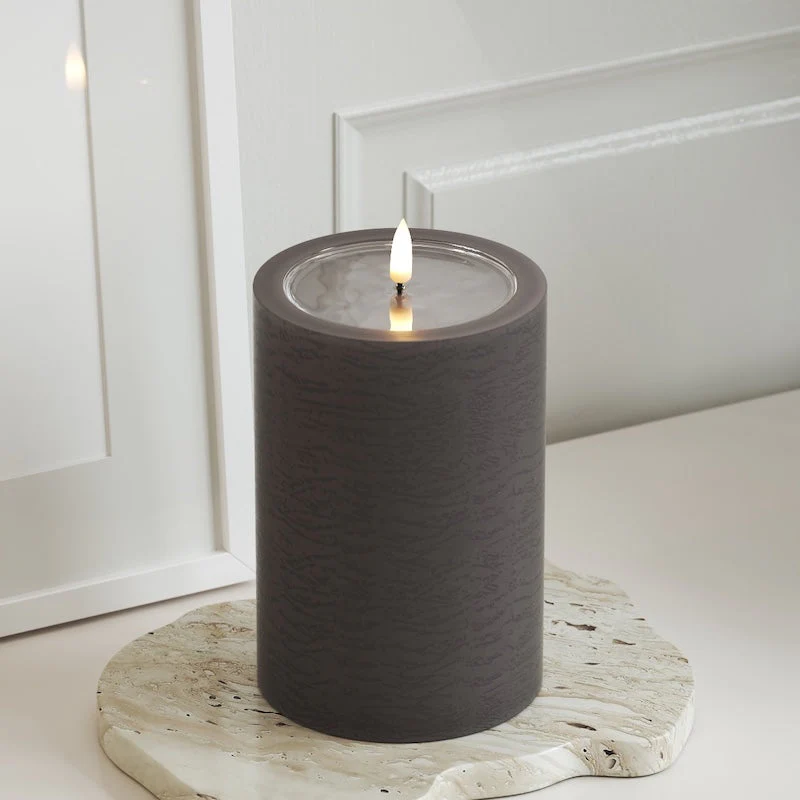 Skapa en mysig och elegant atmosfär med detta stiliga LED-blockljus från UNIQUE Candles. Ljuset är handgjort med en exklusiv strukturerad yta och har en förstärkt topp i harts, vilket ger en fantastisk WETLOOK™-effekt. Med den patenterade 3D REAL FLAME™-teknologin får du en verklighetstrogen lågeffekt som förvandlar varje rum. Detta ljus är designat för både säkerhet och långvarig användning. Det är perfekt för att skapa stämning vid alla tillfällen, och timerfunktionen kan enkelt aktiveras med en separat fjärrkontroll, vilket ger dig möjlighet att ställa in ljuset enligt dina önskemål.