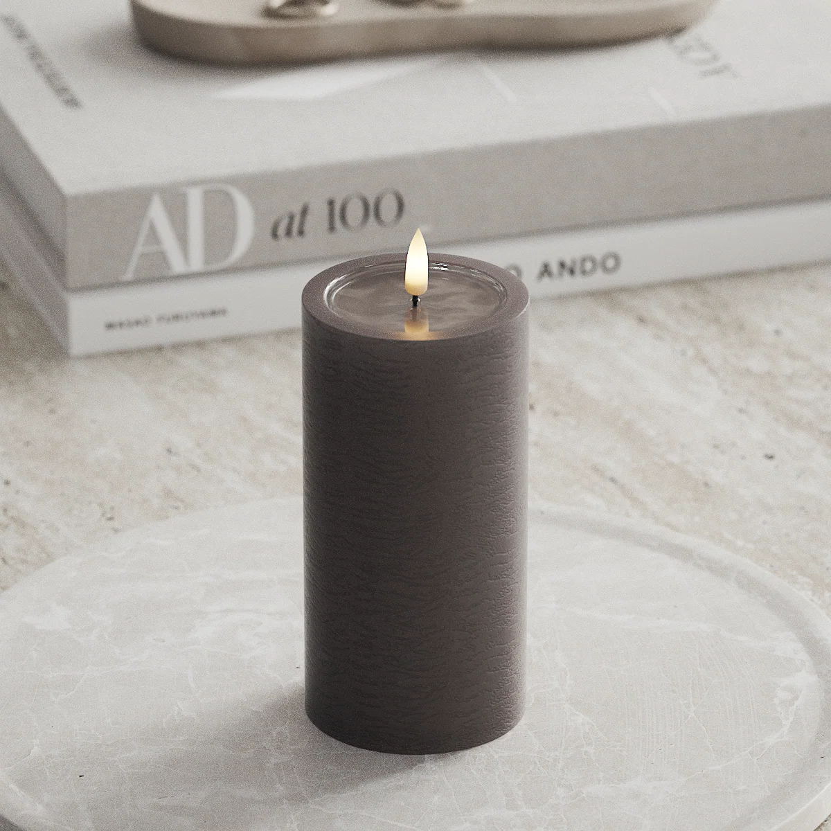 Skapa en mysig och elegant atmosfär med detta stiliga LED-blockljus från UNIQUE Candles. Ljuset är handgjort med en exklusiv strukturerad yta och har en förstärkt topp i harts, vilket ger en fantastisk WETLOOK™-effekt. Med den patenterade 3D REAL FLAME™-teknologin får du en verklighetstrogen lågeffekt som förvandlar varje rum. Detta ljus är designat för både säkerhet och långvarig användning. Det är perfekt för att skapa stämning vid alla tillfällen, och timerfunktionen kan enkelt aktiveras med en separat fjärrkontroll, vilket ger dig möjlighet att ställa in ljuset enligt dina önskemål.