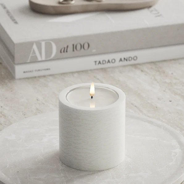 Ge ditt hem en elegant och mysig atmosfär med detta stiliga LED-blockljus från UNIQUE Candles. Ljusets handgjorda, strukturerade yta ger en lyxig känsla och imiterar utseendet av äkta stearin. Med en förstärkt topp i harts och den patenterade 3D REAL FLAME™-teknologin får du en imponerande och realistisk lågeffekt som sprider värme och ljus. Detta ljus är både säkert och långvarigt, perfekt för att skapa stämning i olika miljöer. Ljuset kan enkelt styras med en fjärrkontroll (säljs separat), som erbjuder en praktisk timerfunktion för bekvämlighet. UNIQUE-kollektionen levereras i eleganta presentlådor, vilket gör dem till utmärkta gåvor eller inredningsdetaljer.